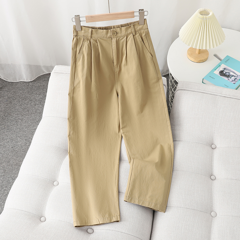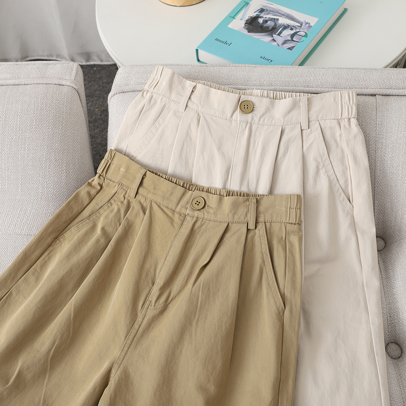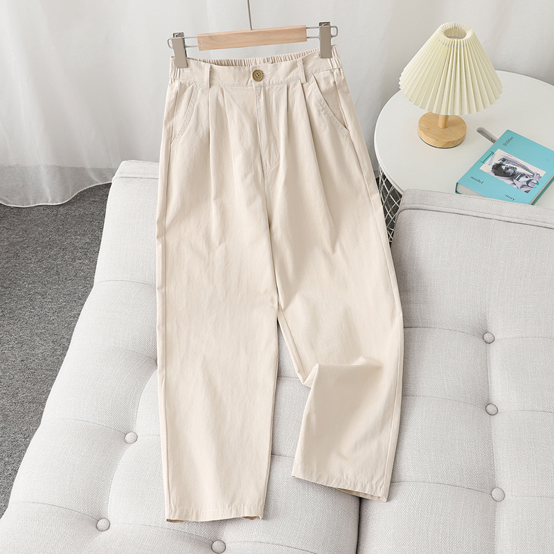 新款 高腰宽松小个子女哈伦裤 薄棉九分裤 裤 女显瘦休闲米色工装 夏季