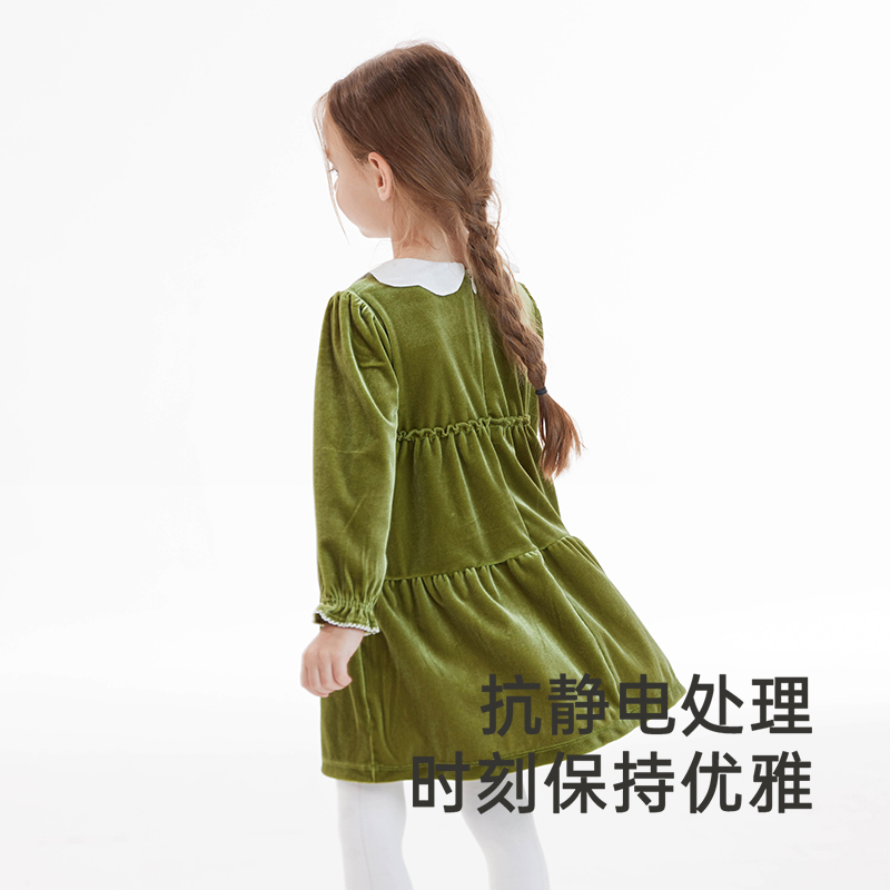 新款 女孩裙子金丝绒宝宝儿童公主裙长袖 款 英氏女童连衣裙秋季