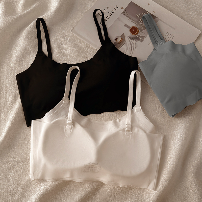 少女内衣无痕冰丝吊带圌文胸学生夏季 固定 聚拢舒适小背心背心式