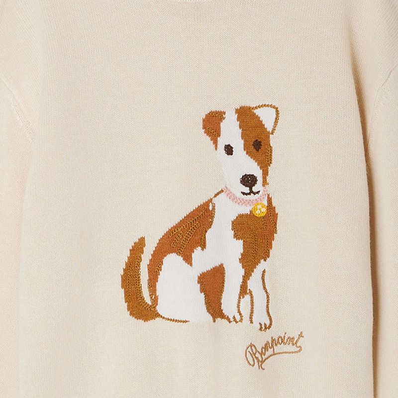 Bonpoint童装 秋冬大童羊毛小狗图案长袖 圆领套衫
