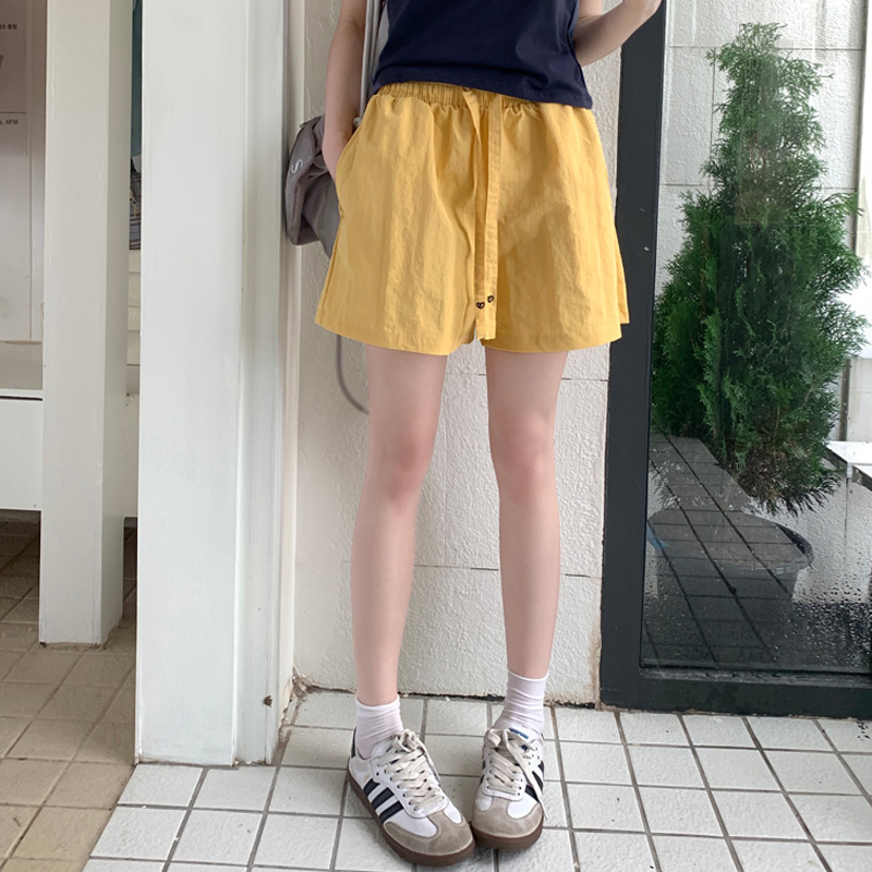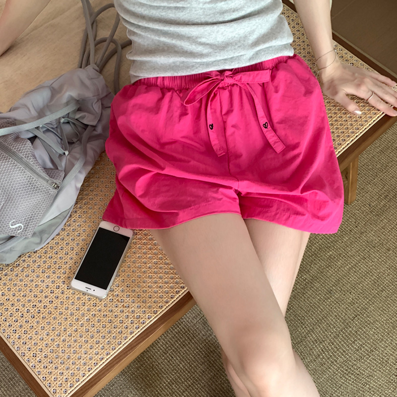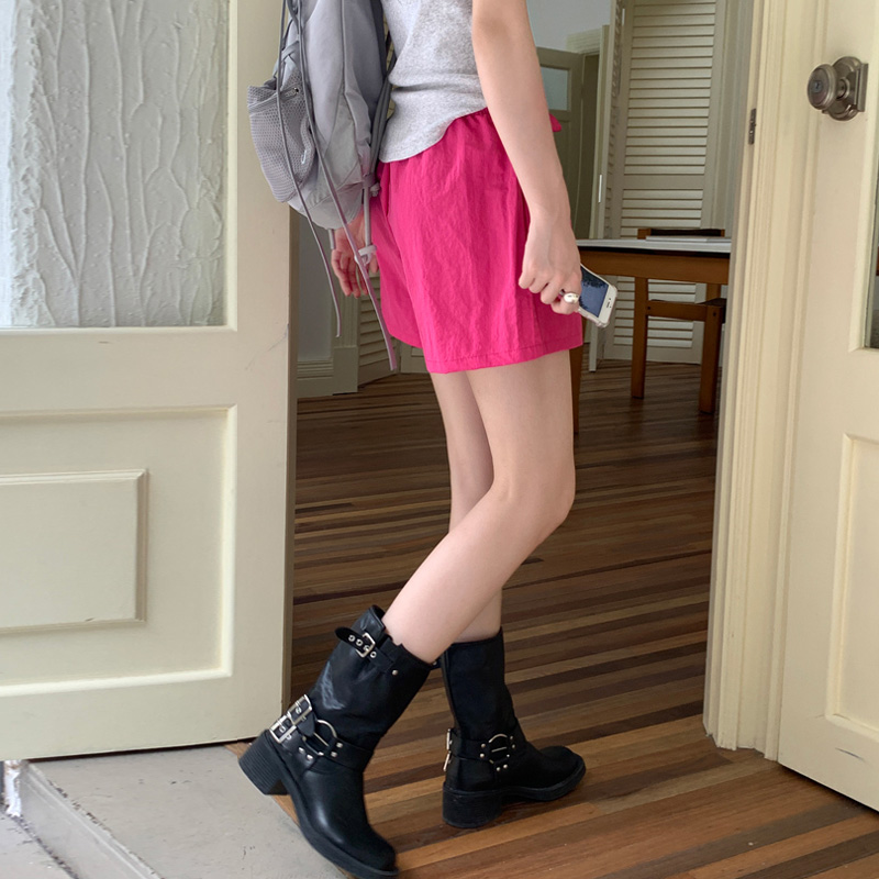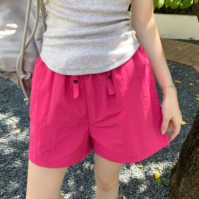 子休闲裤 夏季 速干玫红色裤 女薄款 松紧腰 小个子多巴胺火龙果色短裤