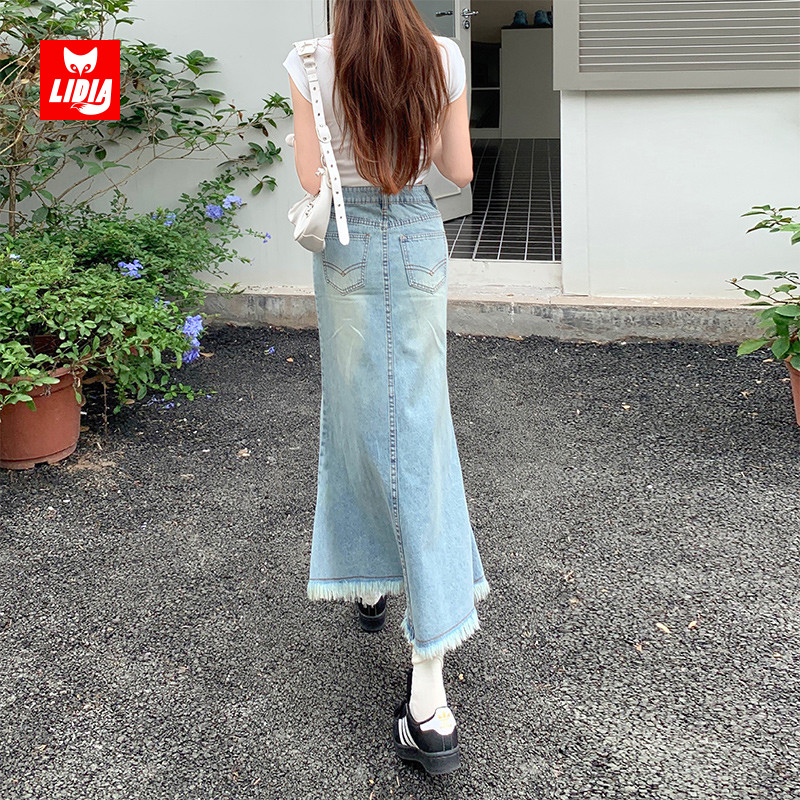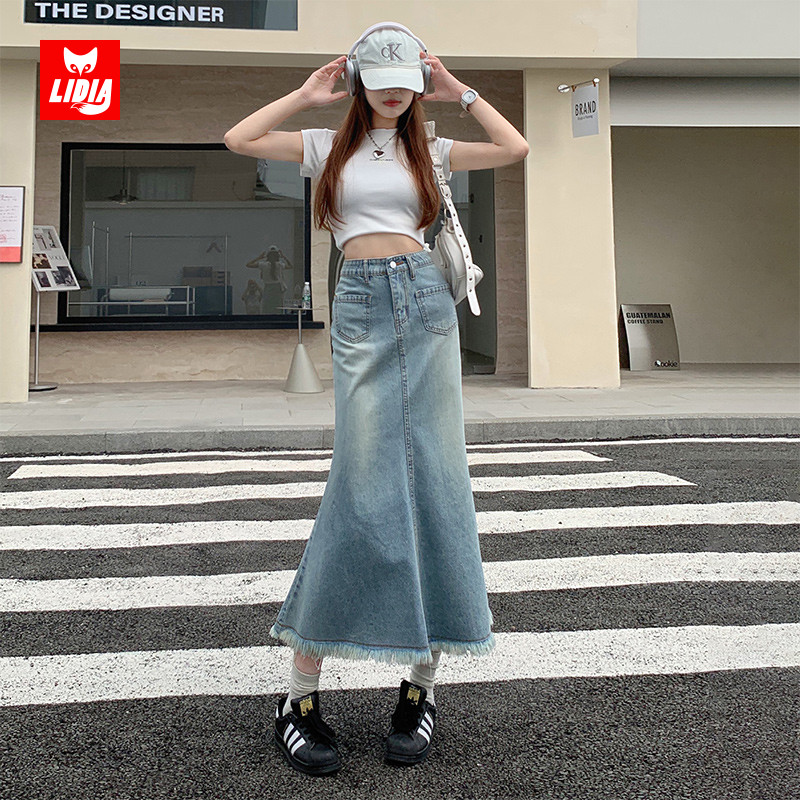 高腰复古侧褶皱a字包臀长款 美式 新款 半身裙女2025夏季 裙子 工装