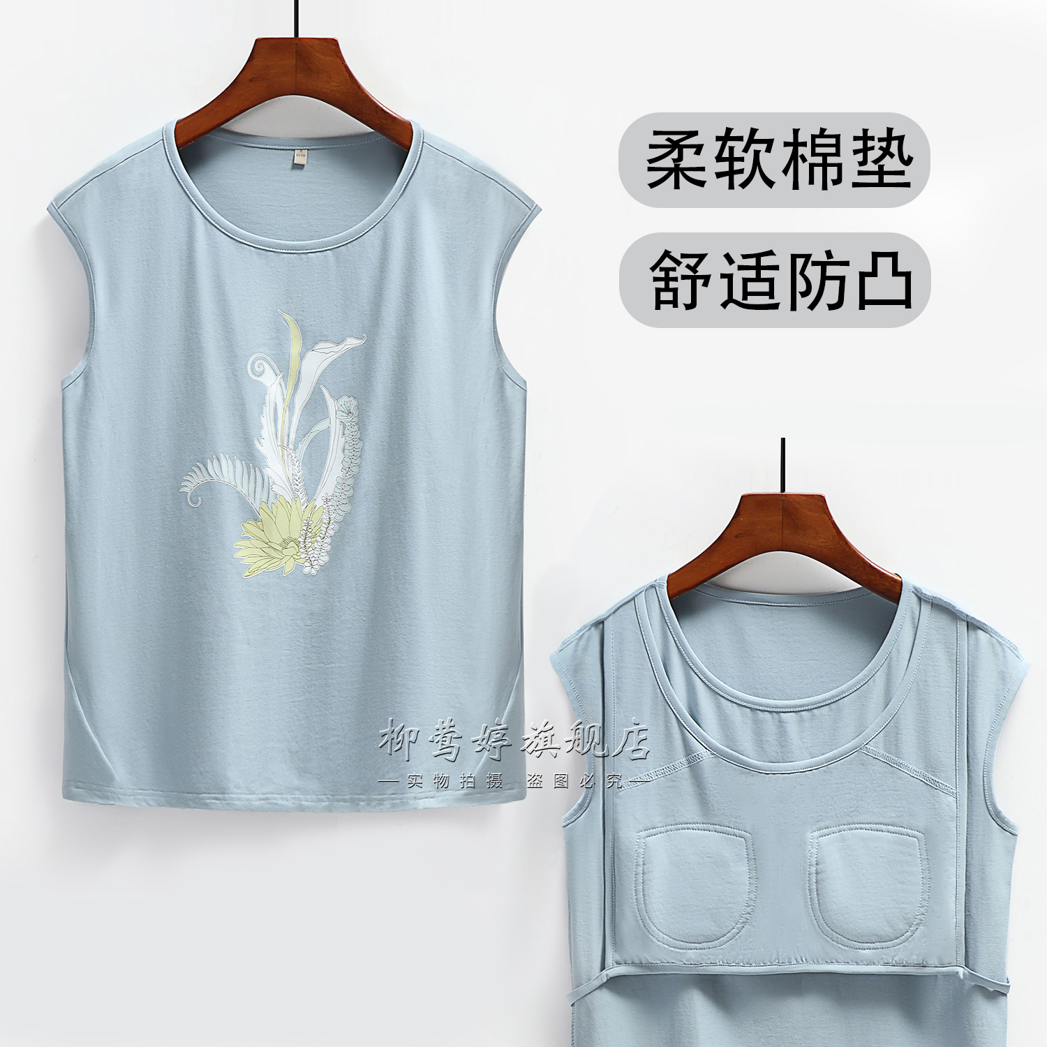 带胸垫圆领坎袖 上衣棉可外穿 背心女包肩短袖