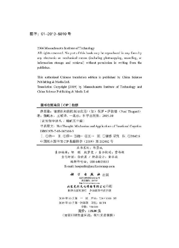Thagard 社书籍KX 热思维 加 保罗·萨伽德 机制与应用 正版 情感认知 科学出版 Paul 京联