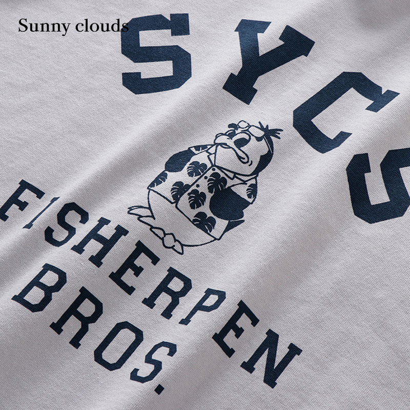 纯棉落肩七分袖 桑妮库拉 男式 clouds 复古感印花T恤 Sunny
