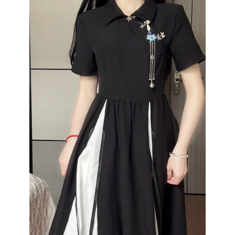t恤女旗袍连衣裙法式 新中式 小众设计感短袖 夏季 一裙一衣潮 情侣装