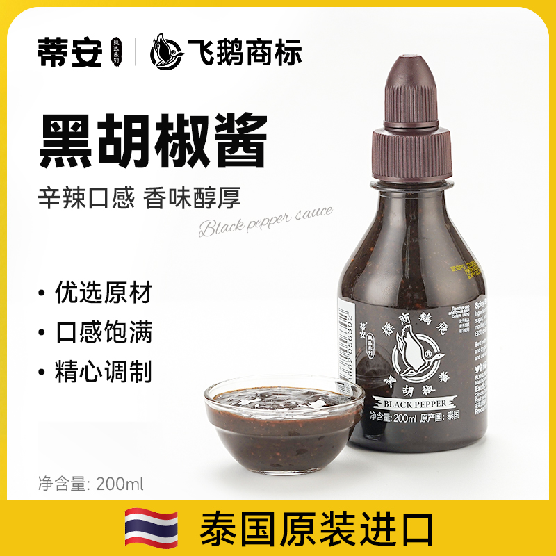 蒂安泰国进口黑胡椒酱牛排酱专用家用黑椒汁拌面烤肉意大利面调料