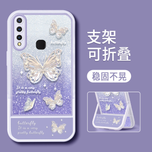 带支架高端外壳 vivo防摔保护套个性 适用于VIVOY5s手机壳新款 女网红创意闪粉蝴蝶U3全包硅胶软壳z5i不会撞壳
