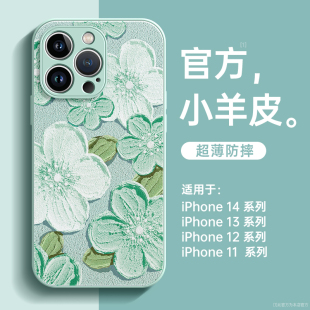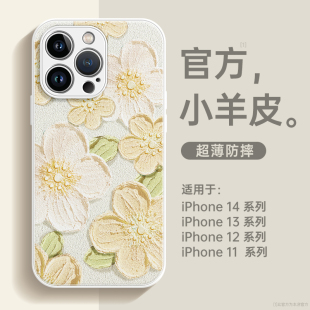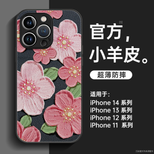 适用于iPhone17pro手机壳15苹果13新款 promax小羊皮12硅胶防摔16高级感软plus桃花14女xr全包11promax手机套x