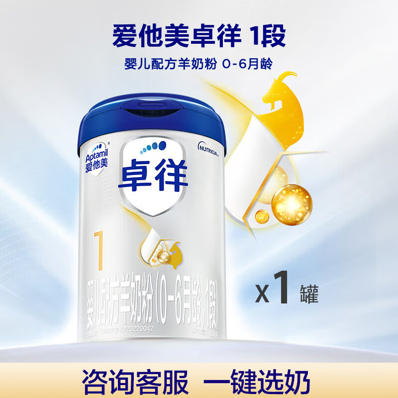 6月 1罐0 爱他美旗舰店 爱他美卓徉婴儿配方羊奶粉1段800g