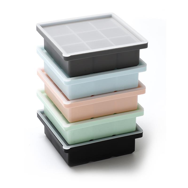 带盖9格硅胶冰格创意DIY制冰块模具婴幼儿硅胶糖果色可选辅食盒