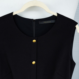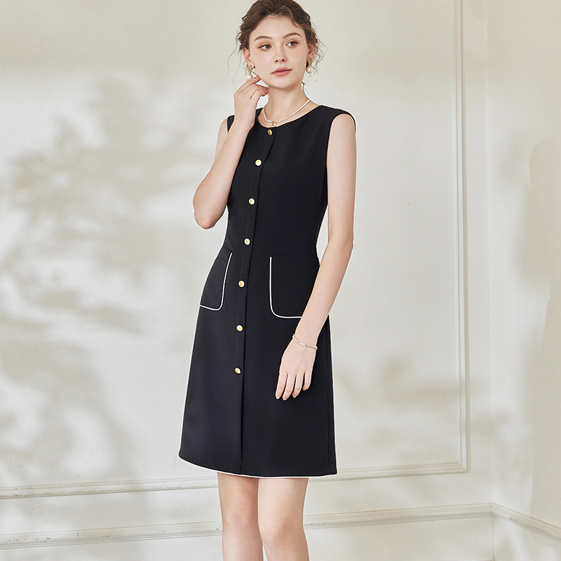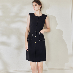 新款 A字摆连衣裙女2025夏装 气质圆领通勤小黑裙08939 无袖 罗衣时尚