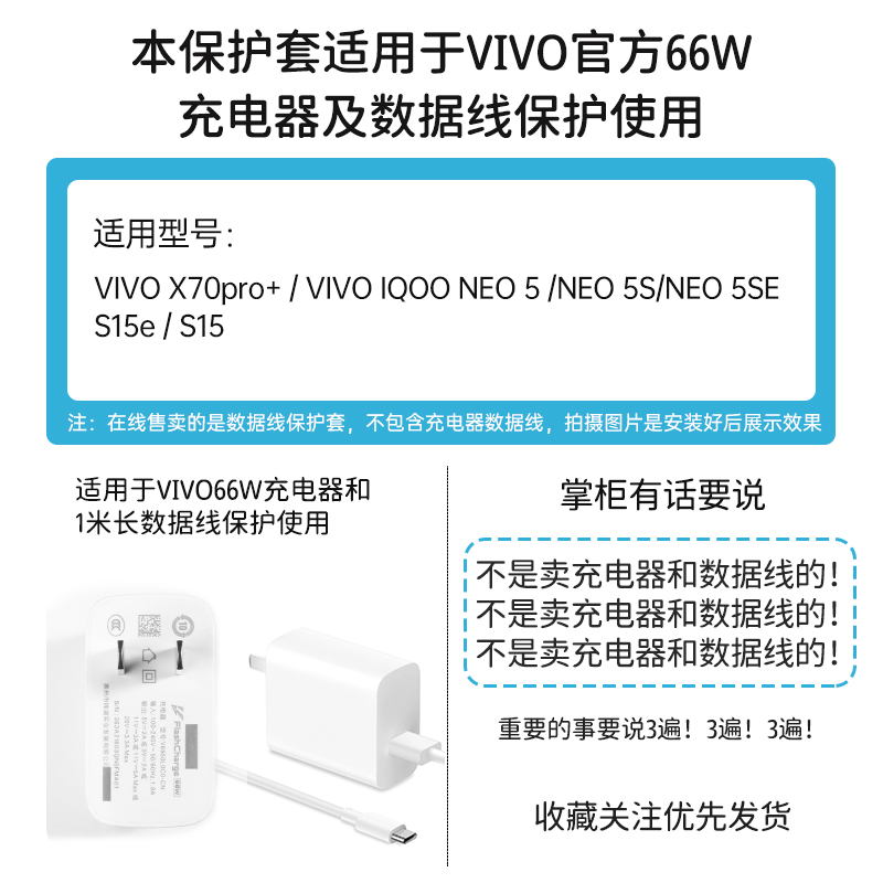 pro iqoo neo6 适用vivo66W充电器保护套透明印花卡通 数据线保护套x80 5SE Y77手机缠绕绳防折断 S16Pro