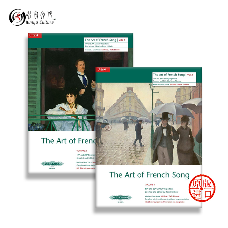 彼得斯原版 Voice Medium Song 中低音声部和钢琴 全套共一至二卷 Vol Art 乐谱书 19和20世纪法国艺术歌曲集 French