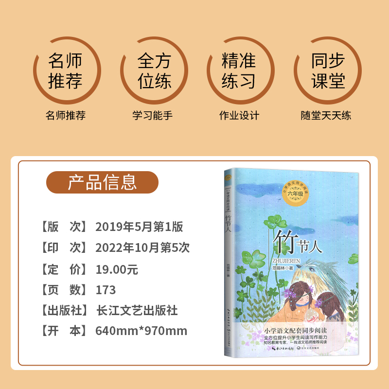 社海门发货 阅读书目小学生课外阅读积累教辅书籍长江文艺出版 海门2024秋六年级上 好书竹节人范锡林著小学6年级上册语文教材推荐