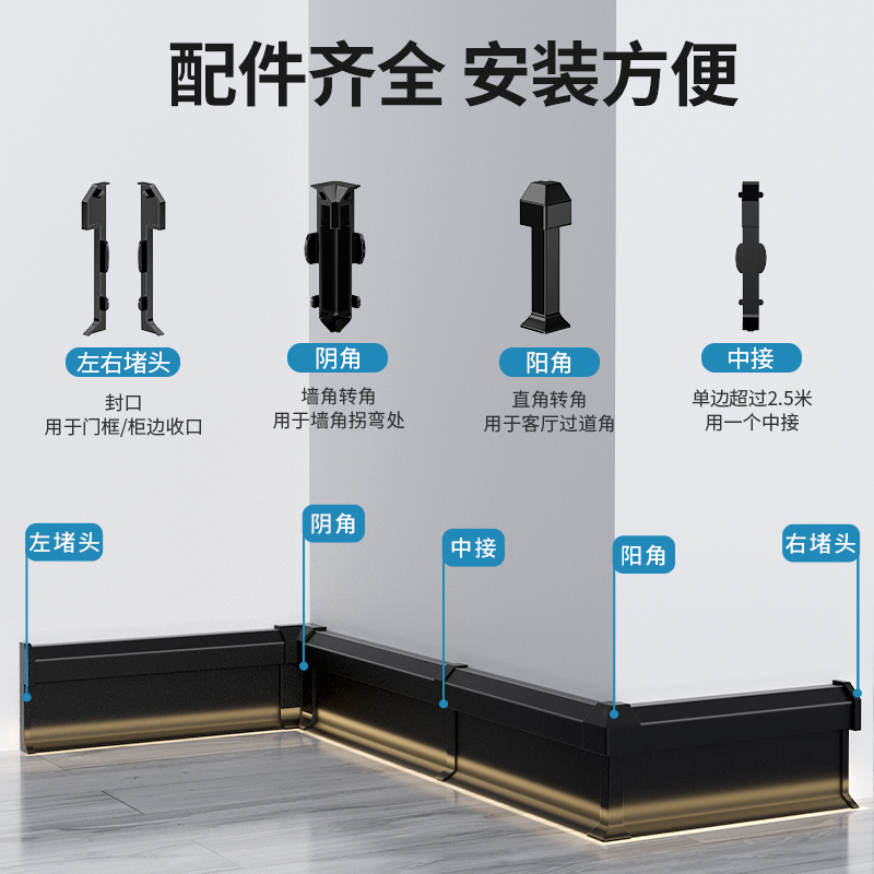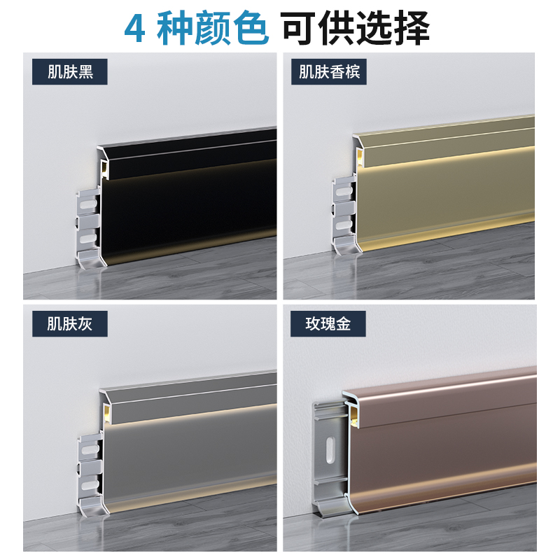 铝合金卡扣发光踢脚线明装 超薄带led灯6cm金属地脚线8cm墙贴脚线