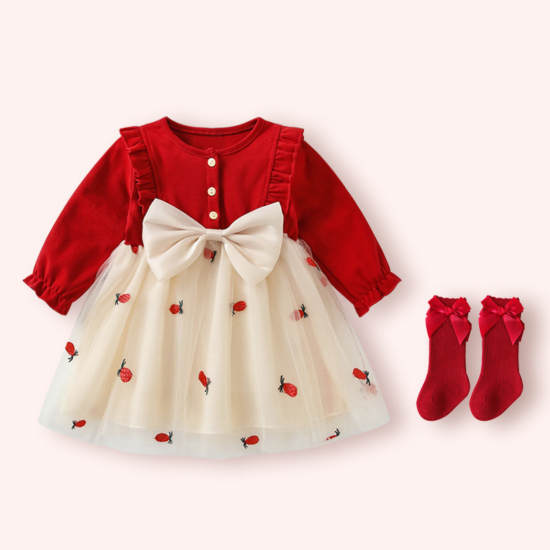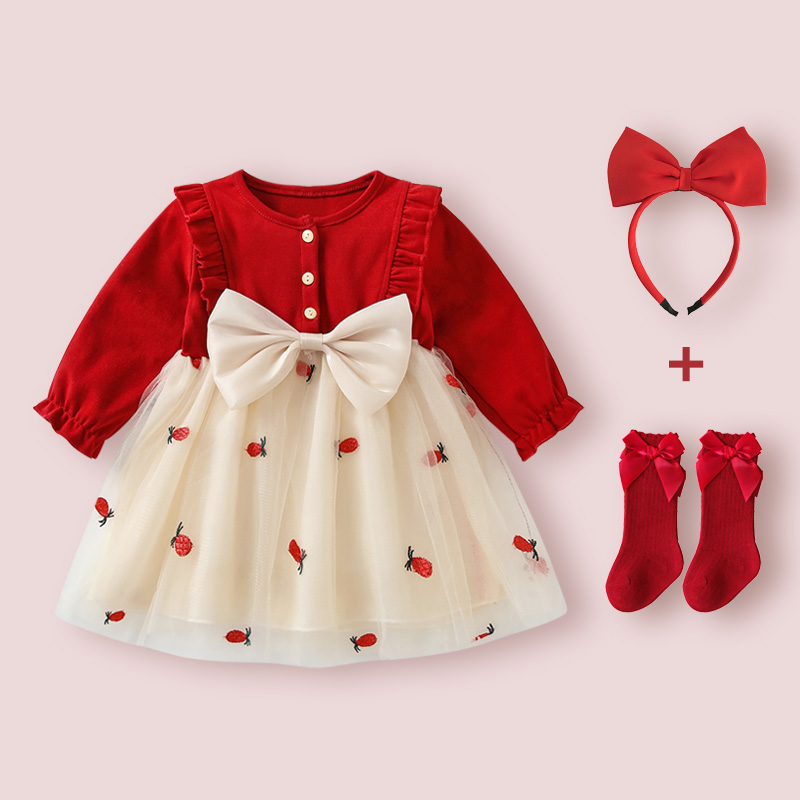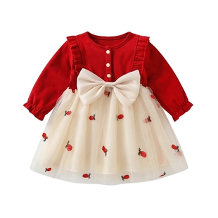 周岁女宝礼服婴儿秋装 衣服女童连衣裙抓周宴公主裙女宝宝裙子秋冬