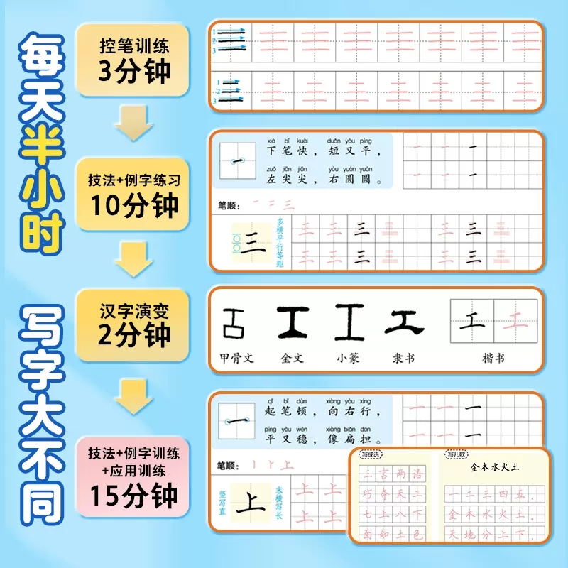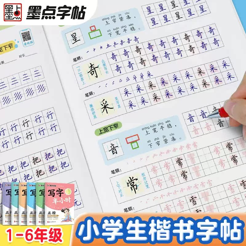 墨点字帖荆霄鹏书写字半小时1 6一二三四五六年级小学生控笔训练视频教学生字练习