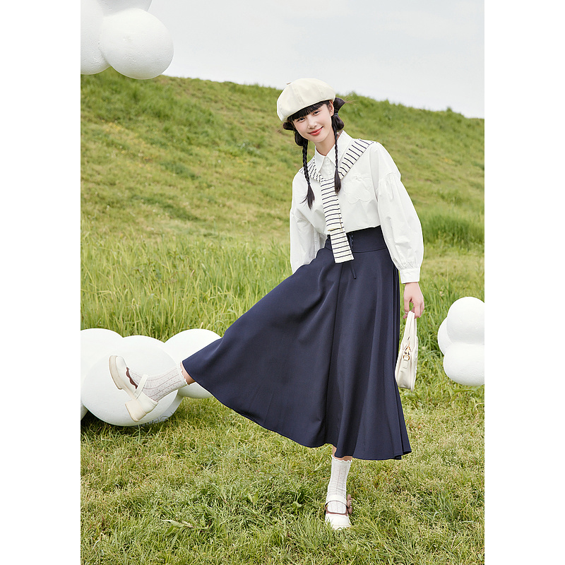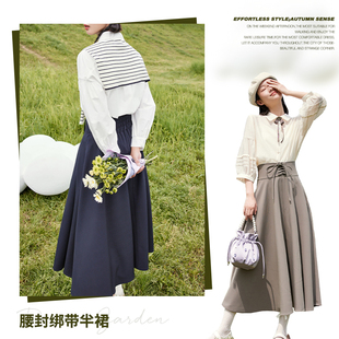 2025新款 森马半身裙女松紧腰纯色百搭春季 遮胯A字伞裙 商场同款