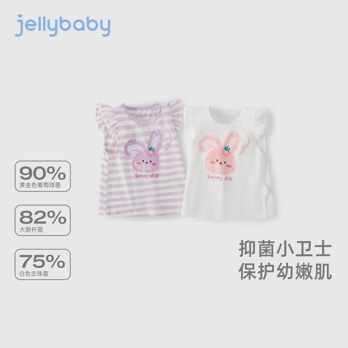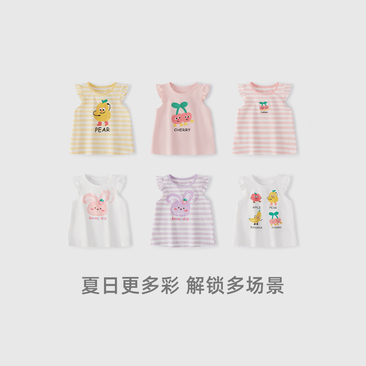 衣服小童条纹夏装 t恤6宝宝可爱飞袖 女童夏季 潮儿童上衣女 7A抗菌