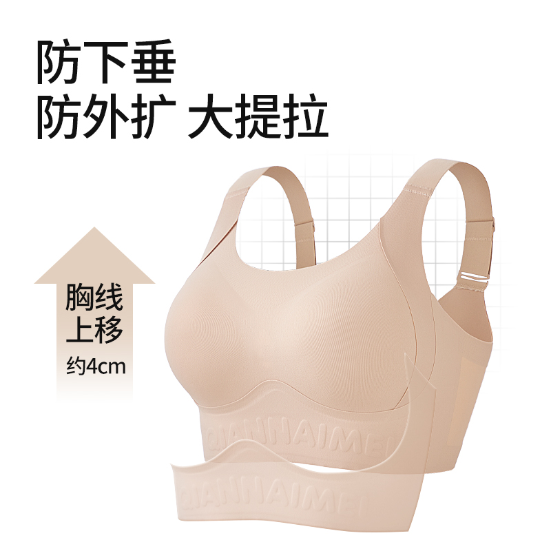 千奈美无痕粉底液隐形内衣女大胸显小全罩杯收副乳提拉防下垂文胸