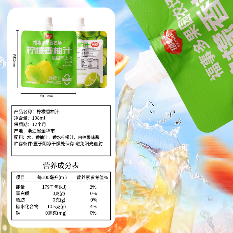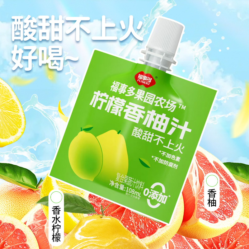 福事多柠檬香柚汁108ml大人小孩金饮料豆芽开袋即食柚子饮品 包邮