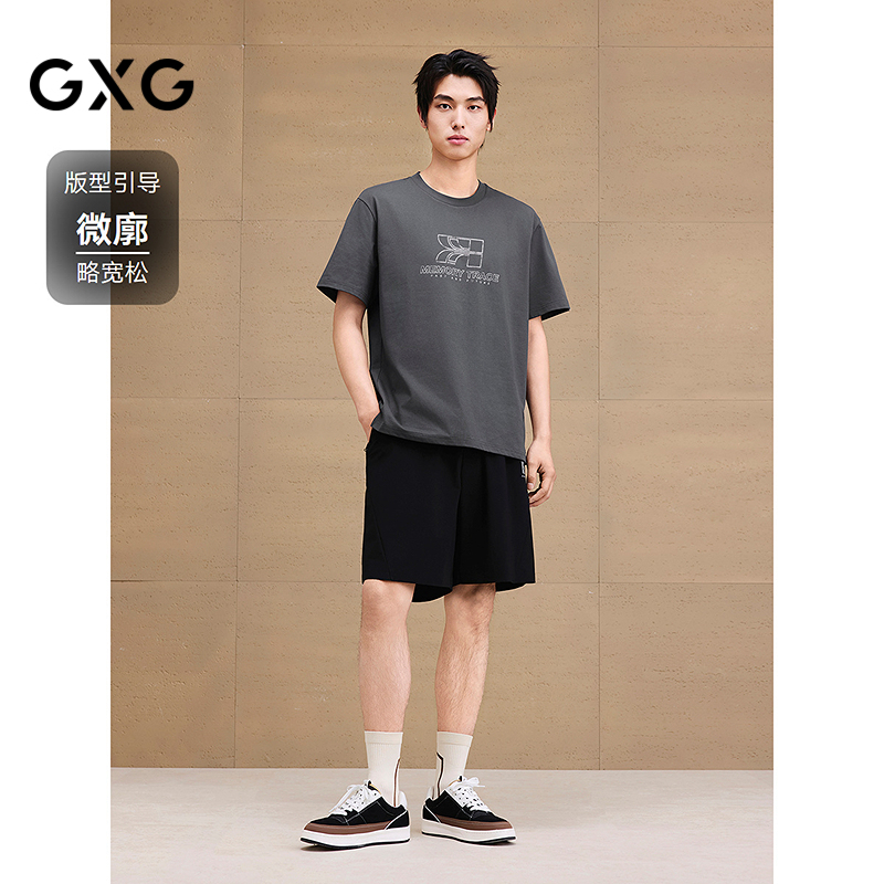 新品 GXG男装 2025夏季 针织 圆领T恤双色图案印花上衣凉感短袖
