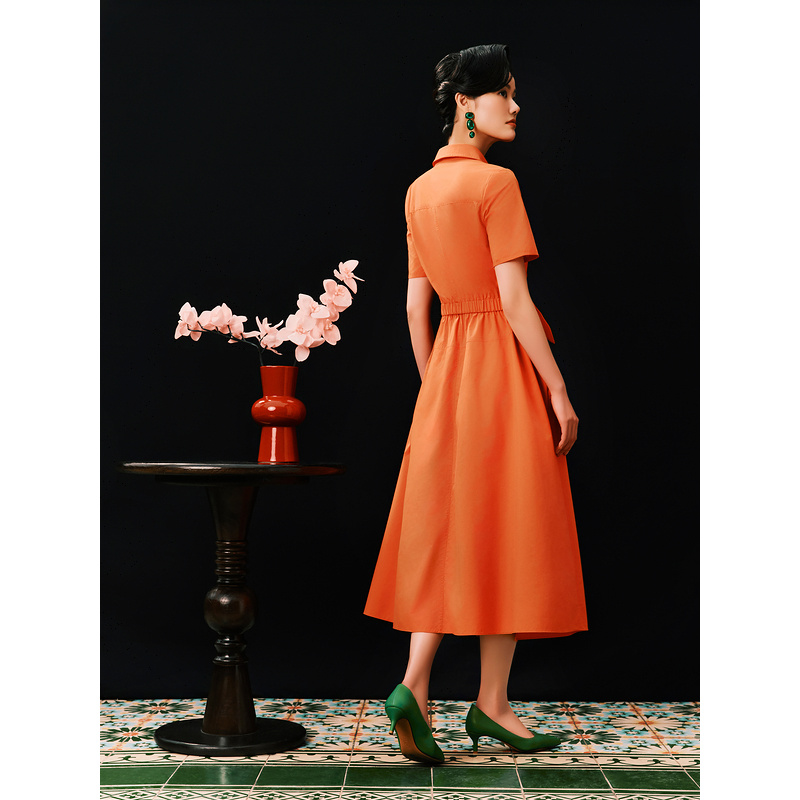 衬衫 法式 YINER音儿夏季 方领假两件橙红连衣裙 1996系列