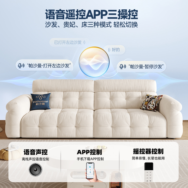 帕沙曼云朵电动沙发床布艺奶油风小户型客厅两用双人沙发智能折叠