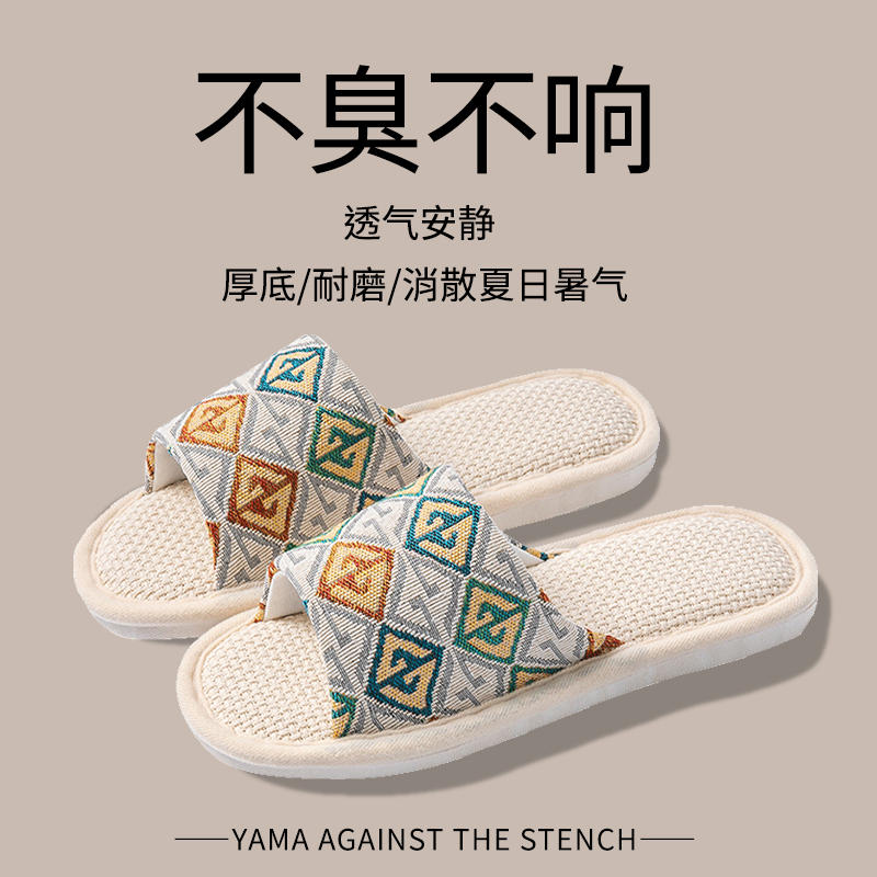 男2025新款 亚麻无声拖鞋 情侣居家透气防滑拖鞋 拖鞋 女夏季