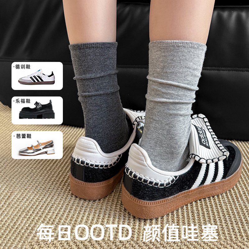 中筒袜吸汗防臭袜子芭蕾风长袜配小皮鞋 灰色无骨堆堆袜女夏季 薄款