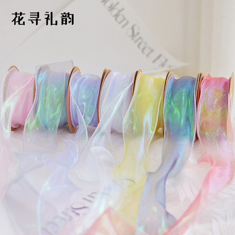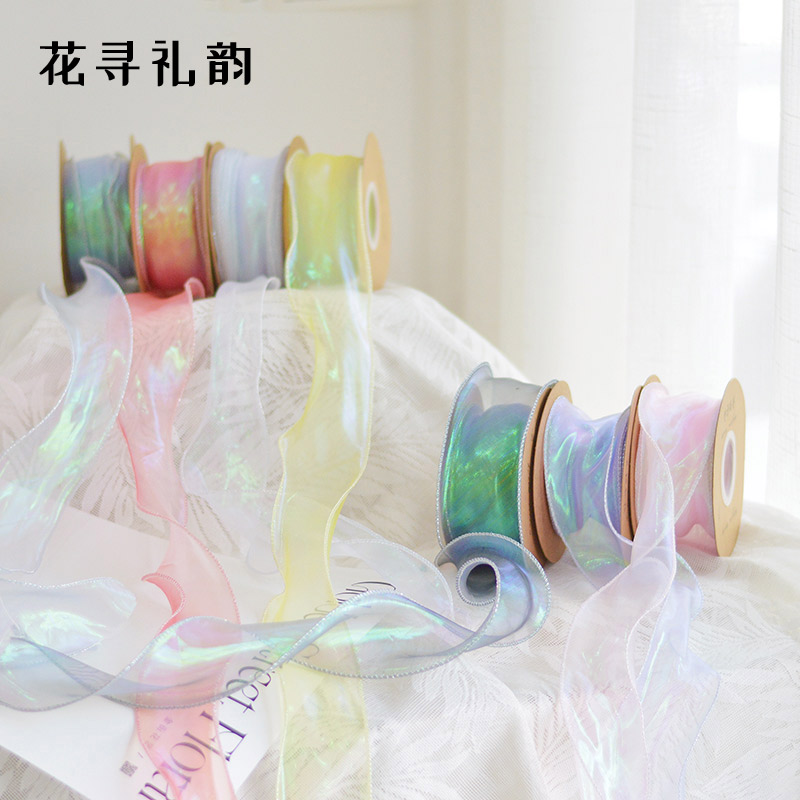 4cm幻彩纱丝带波浪鱼尾纱礼品鲜花包装 饰花束彩带 diy蝴蝶结蛋糕装