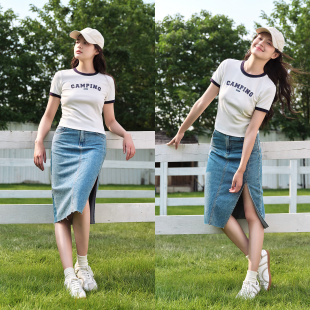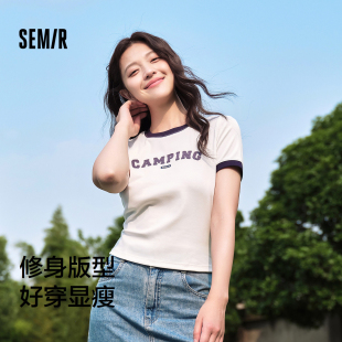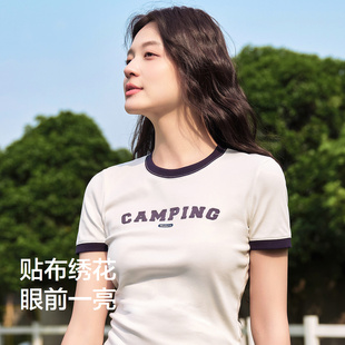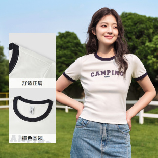 修身 森马短袖 夏季 正肩撞色小个子2025新款 字母上衣潮流 T恤女短款