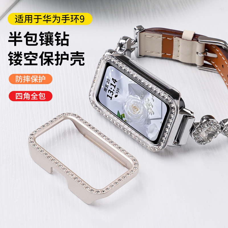 适用于新品 专用高级感九代不顶膜 华为手环10镶钻镂空保护壳PC智能运动9保护套半包壳防摔表壳外壳一体壳女款