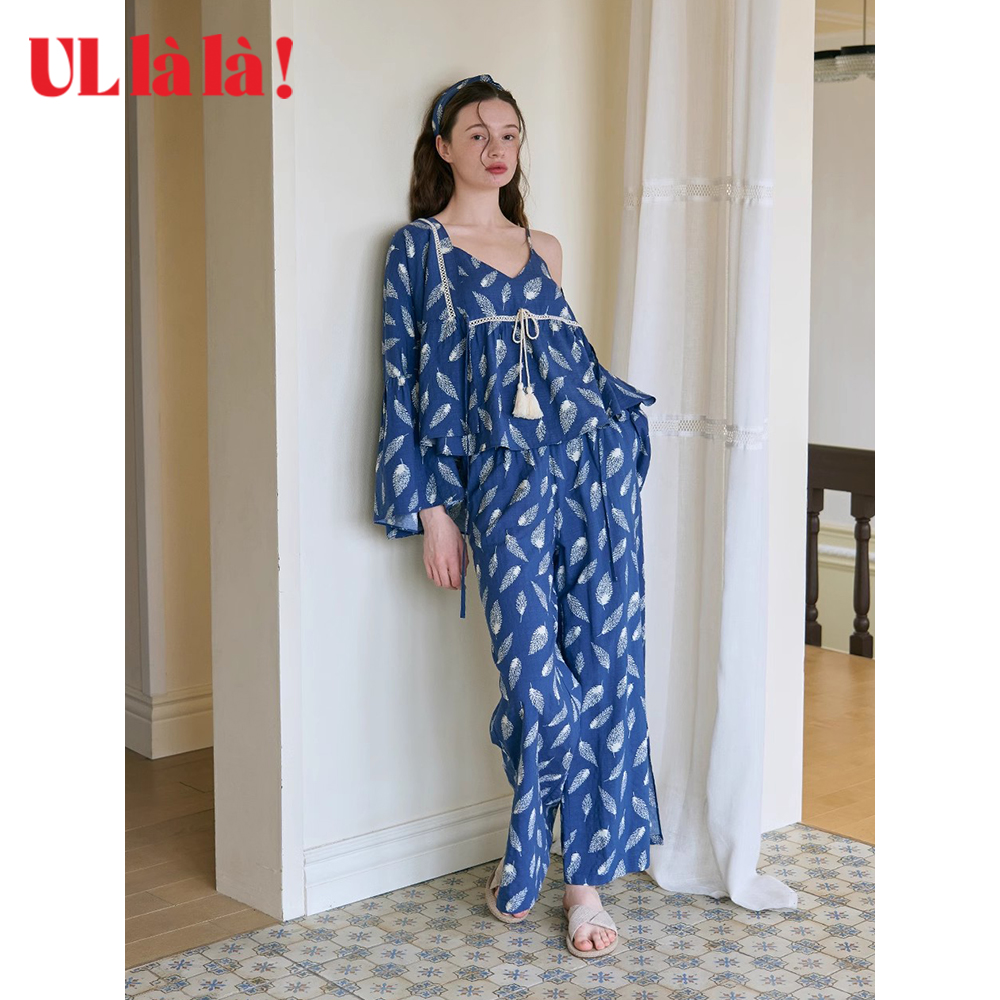 Ullala乌拉拉韩国进口家居服短睡袍睡衣睡裤 宽松减龄吊带女 女夏季