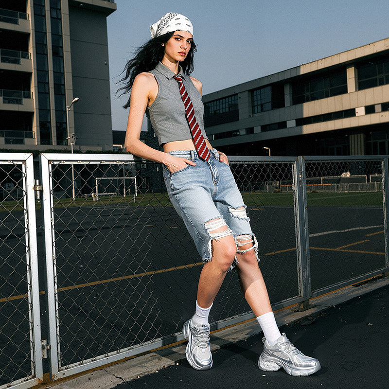 女款 休闲运动鞋 2025秋季 棕色内增高设计感小众时尚 新款 人本德训鞋
