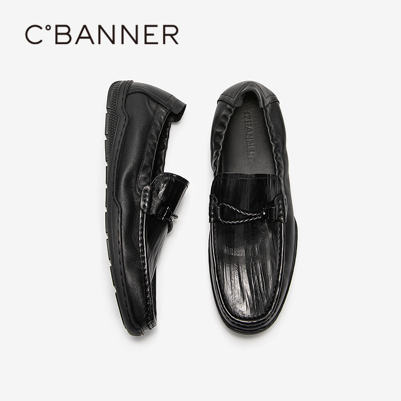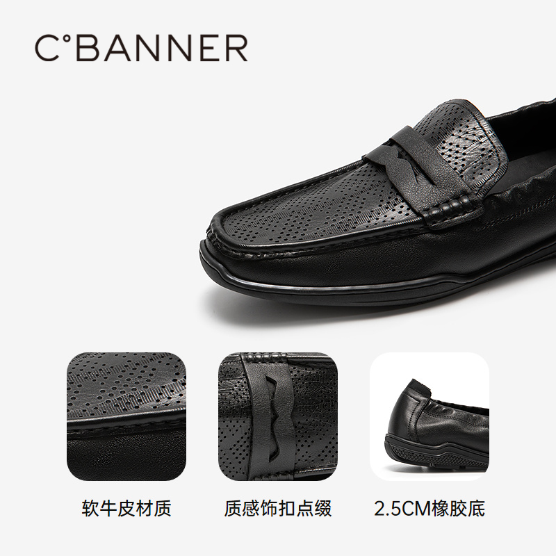 2025夏季 皮鞋 新款 一脚蹬豆豆鞋 千百度男鞋 轻便皮鞋 休闲透气正装