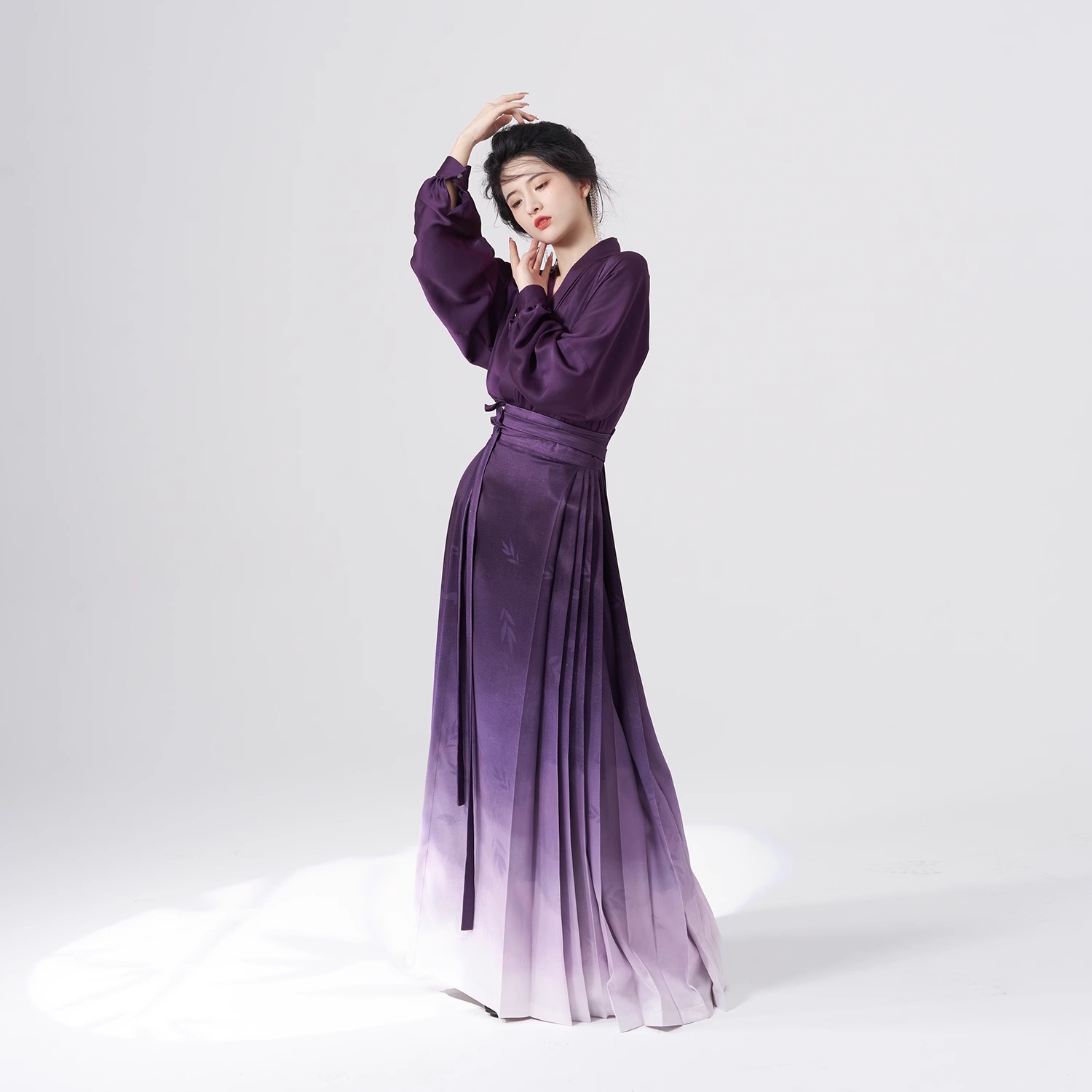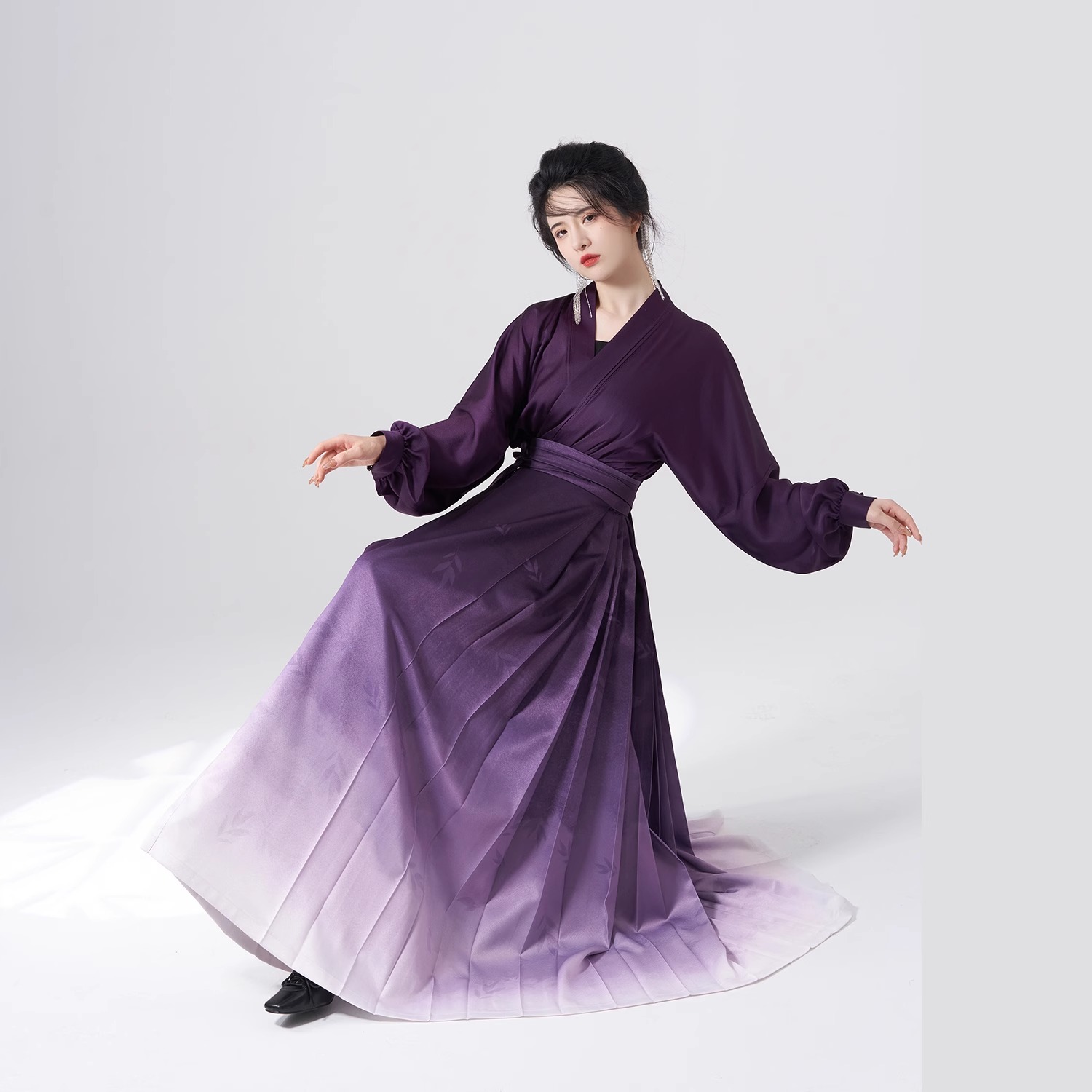 伏棠织造司原创明制汉服改良国风汉元 上衣黛紫渐变马面裙 素飞机袖