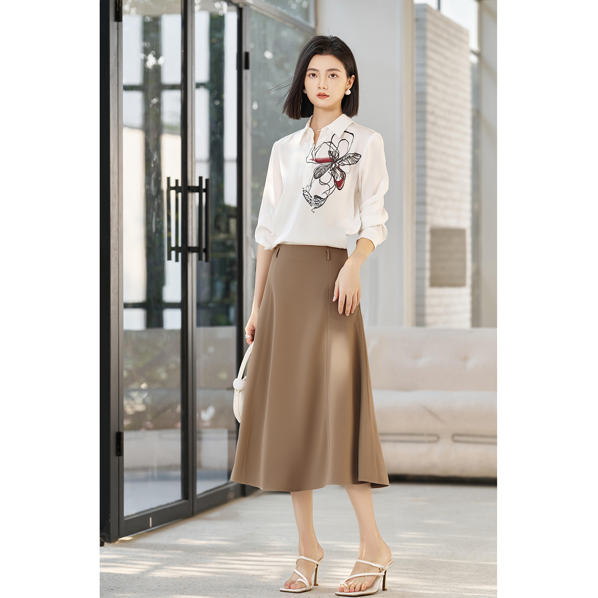 米思阳2025夏季 气质优雅赫本风伞裙遮胯显瘦A字半身裙女5731 新款