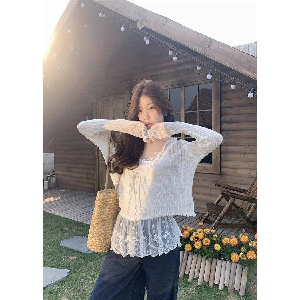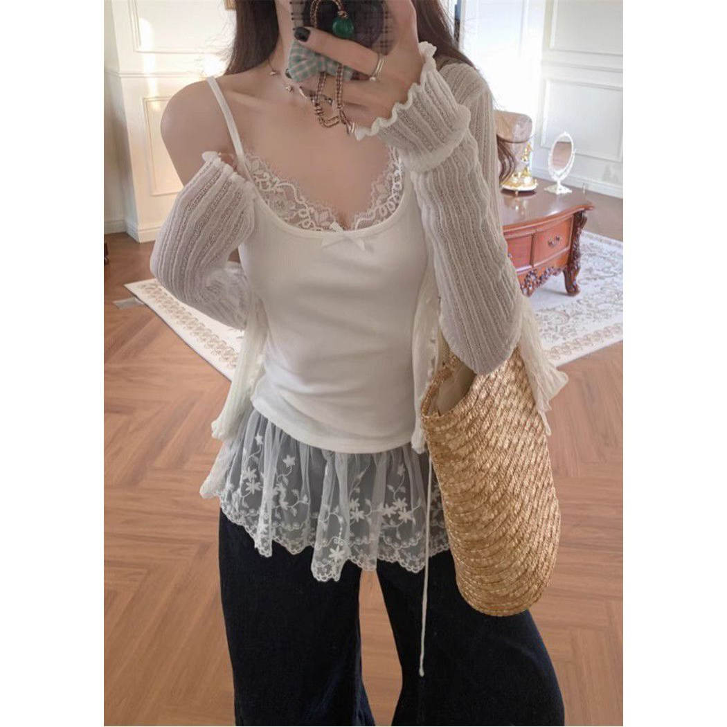495836 别致蕾丝拼接吊带甜美内搭上衣女装 三福背心女2025新款 夏季