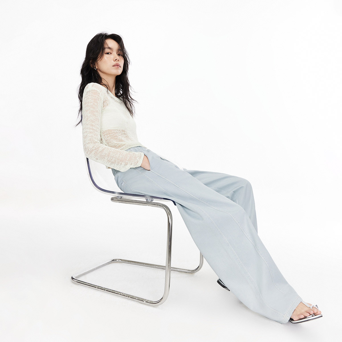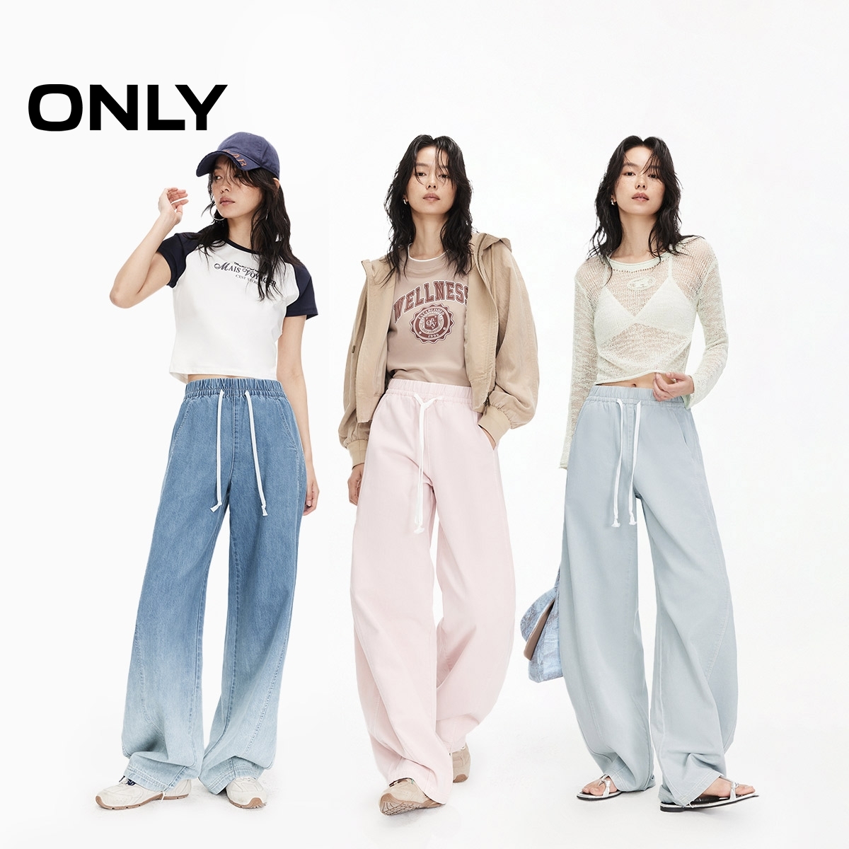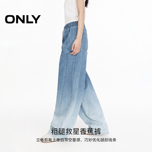 牛仔裤 ONLY2025秋季 潮流渐变长款 抽绳松紧腰宽松香蕉弯刀裤 女 新款