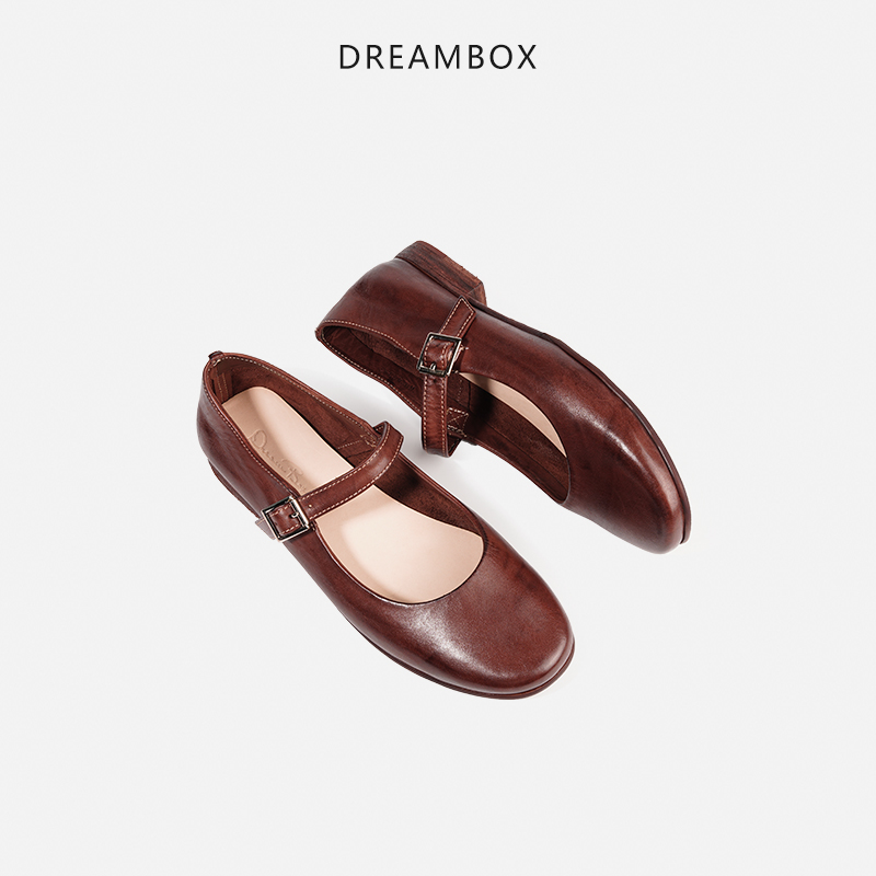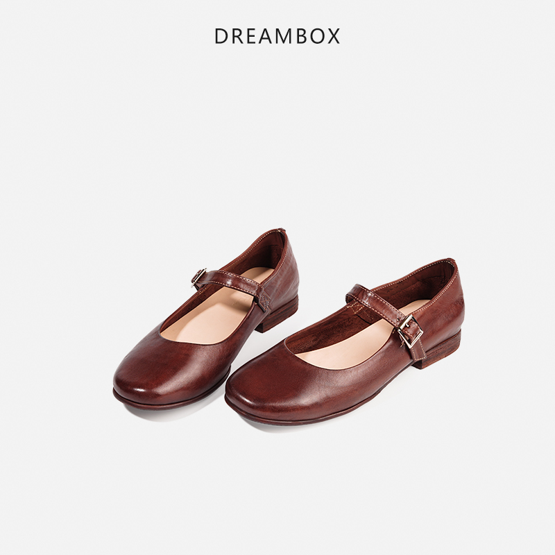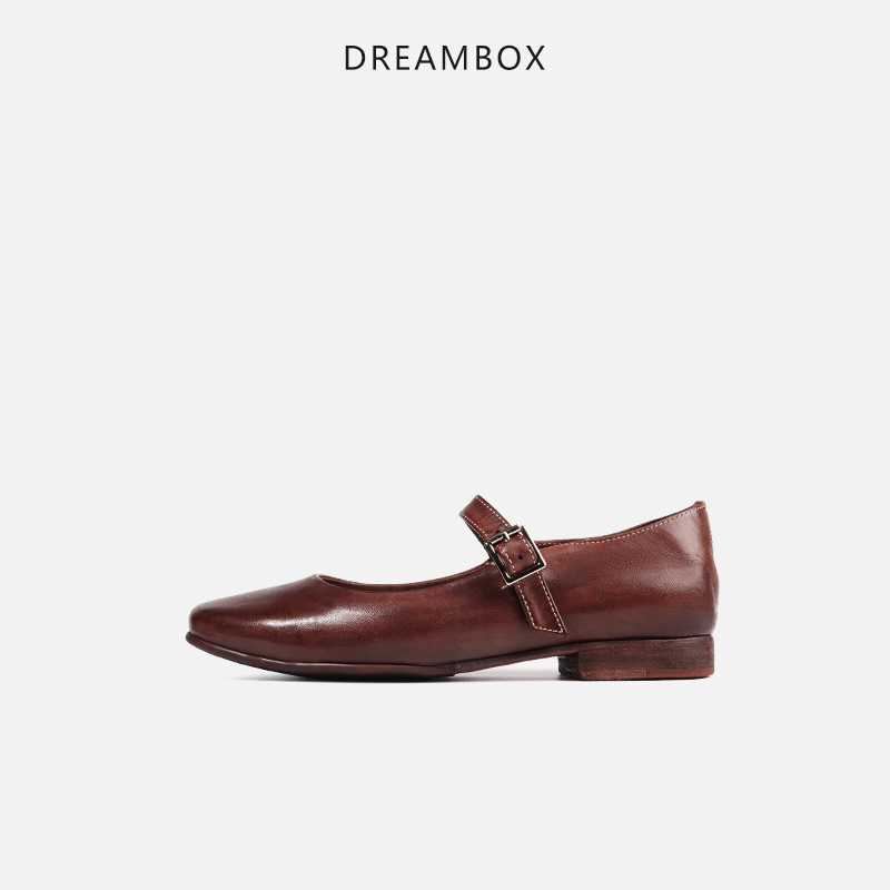 dreambox钧博高档轻奢马皮玛丽珍女鞋 气质优雅一字扣浅口小皮鞋