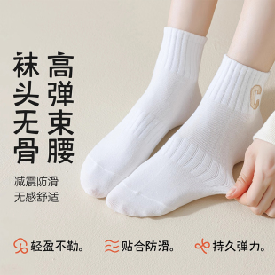 运动中短筒棉袜 纯棉防臭白色吸汗透气无骨潮款 袜子女短袜夏季 薄款