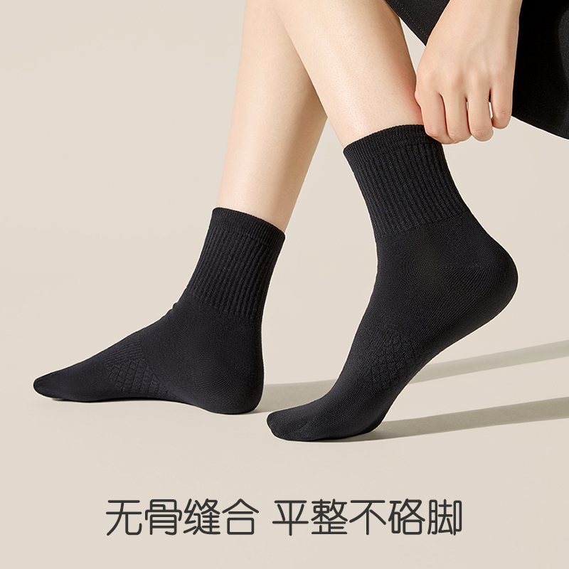 汉棉袜子女中筒袜白色抗菌防臭吸汗黑色纯新疆棉无骨纯色女士短袜