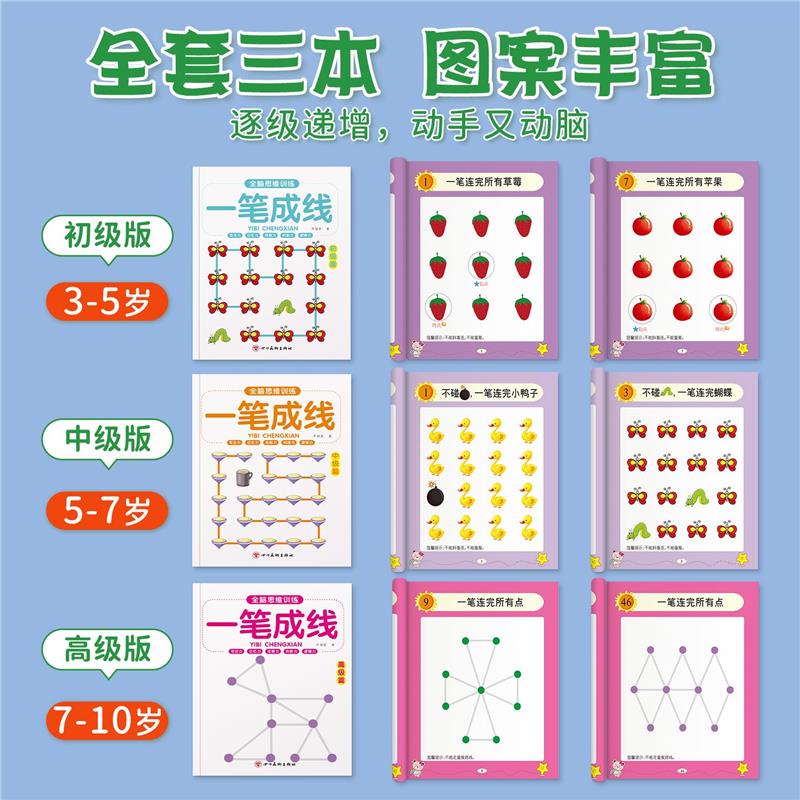 数字连线一笔画图形 10岁专注力逻辑训练儿童书籍连数成图左右脑开发好玩 一笔成线幼儿全脑思维训练益智游戏书幼儿园小中大班3