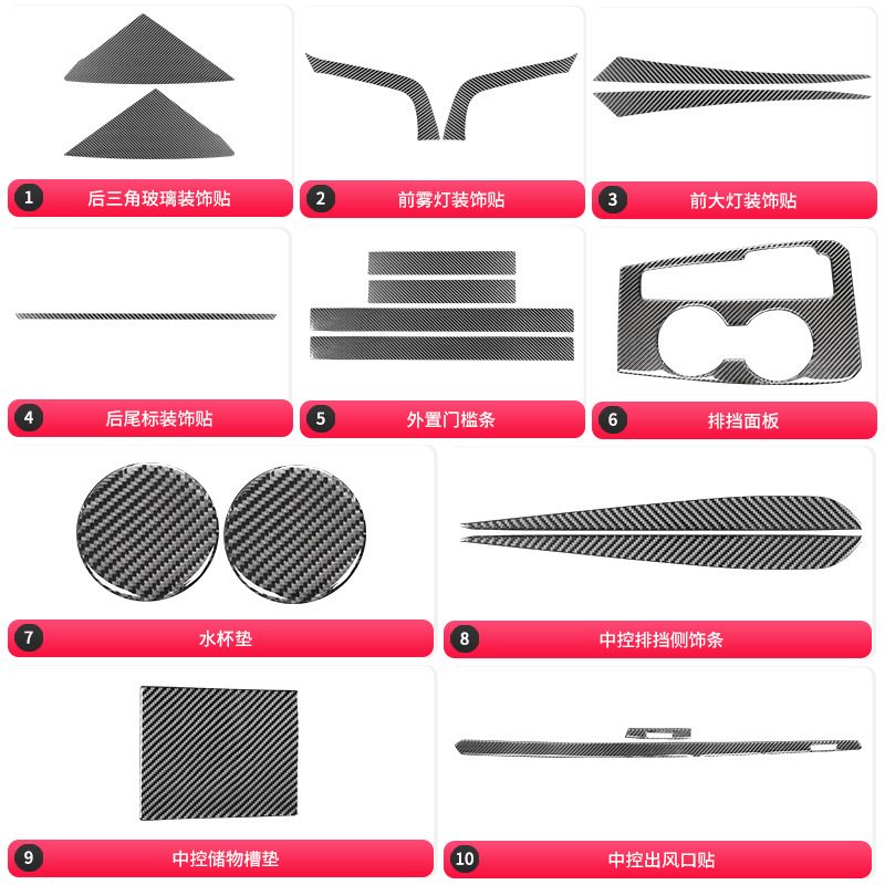 适用于本田十一代11代思域Civic碳纤维内饰改装 饰贴 车顶拉手装