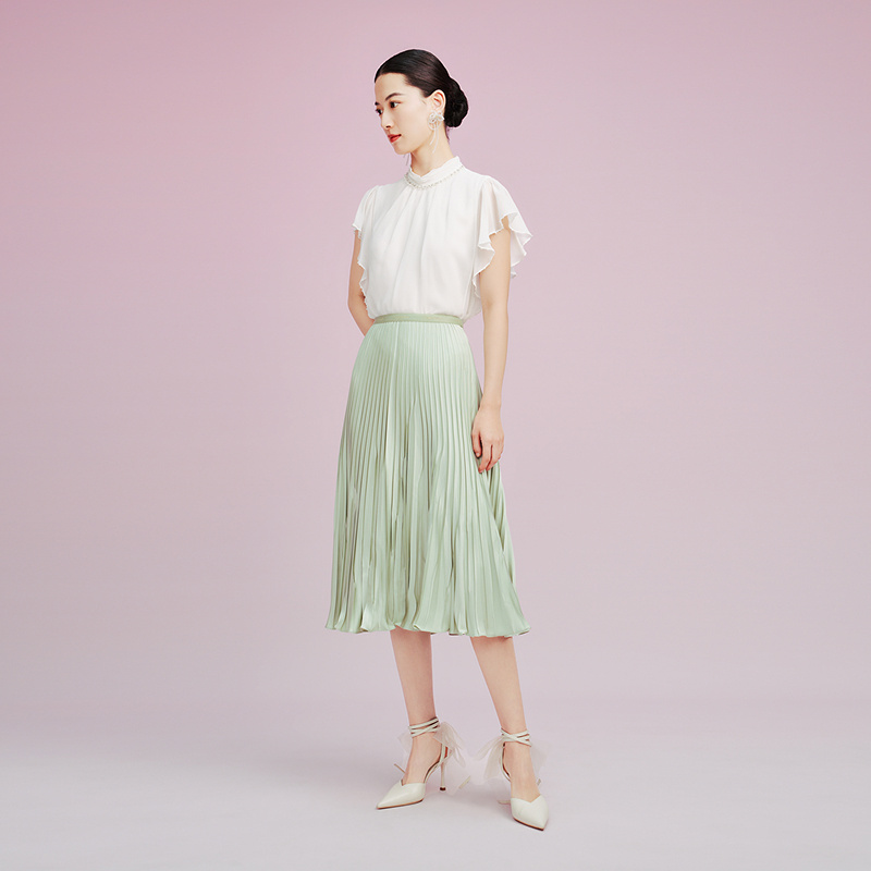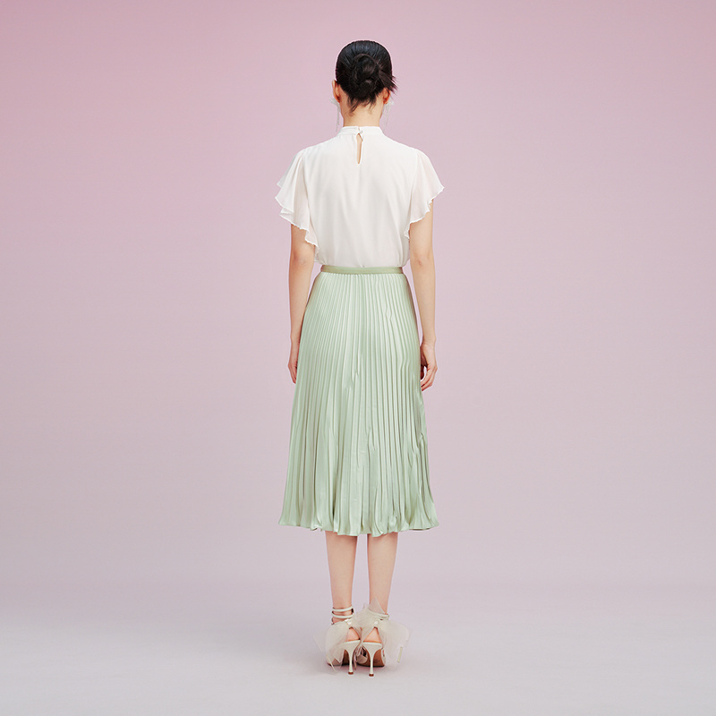 修身 新款 简约a字百褶半身裙女 夏季 Lakoradior拉珂蒂通勤减龄时尚