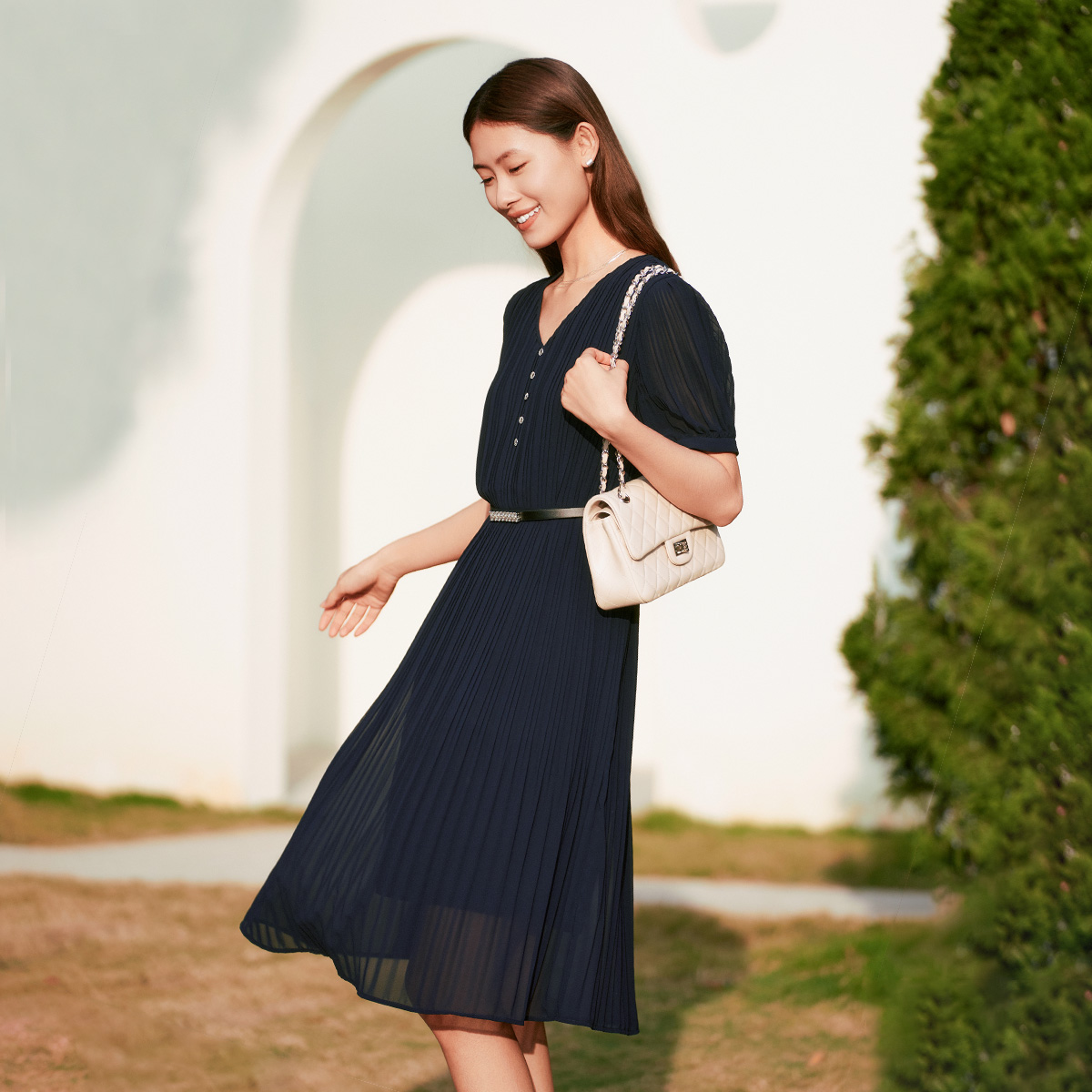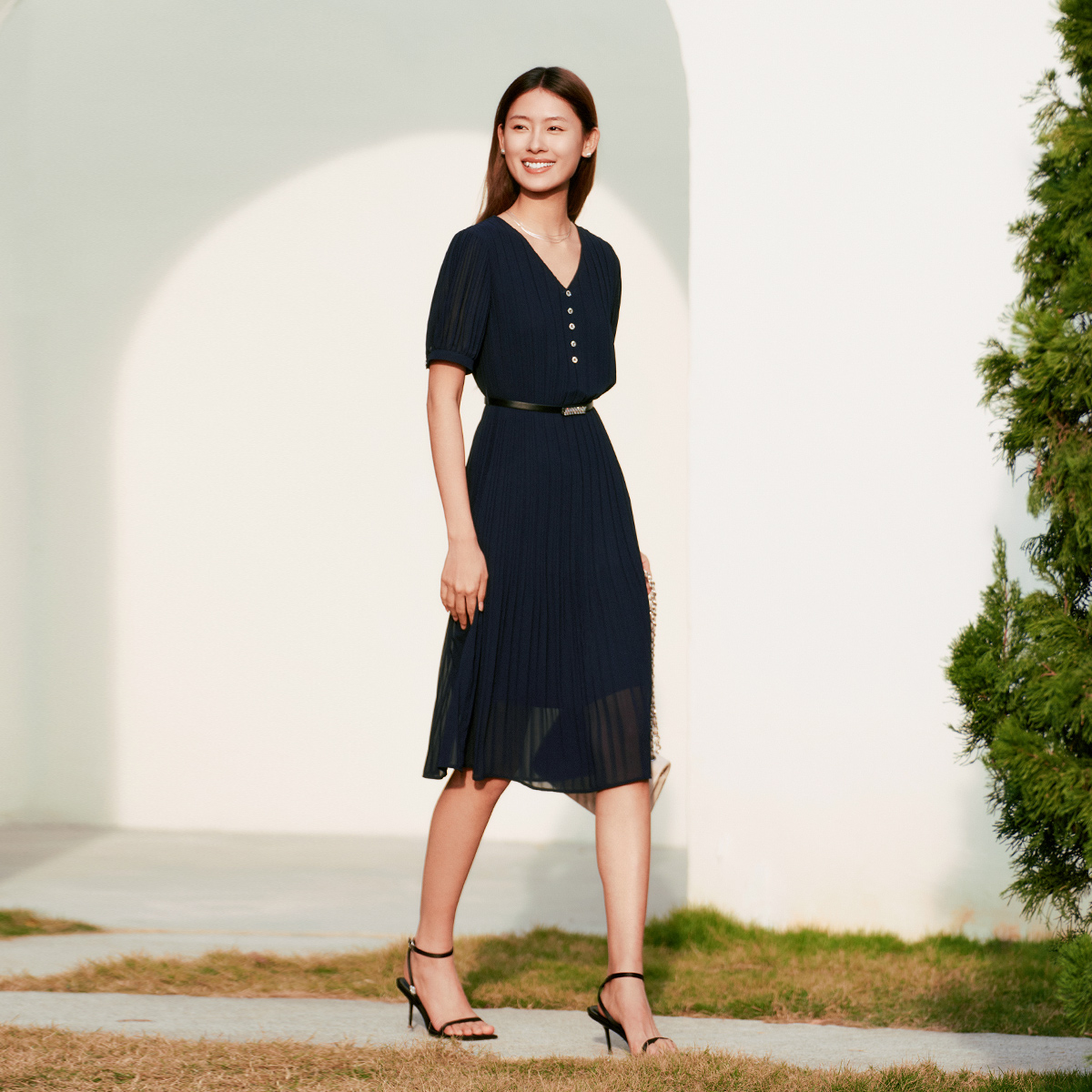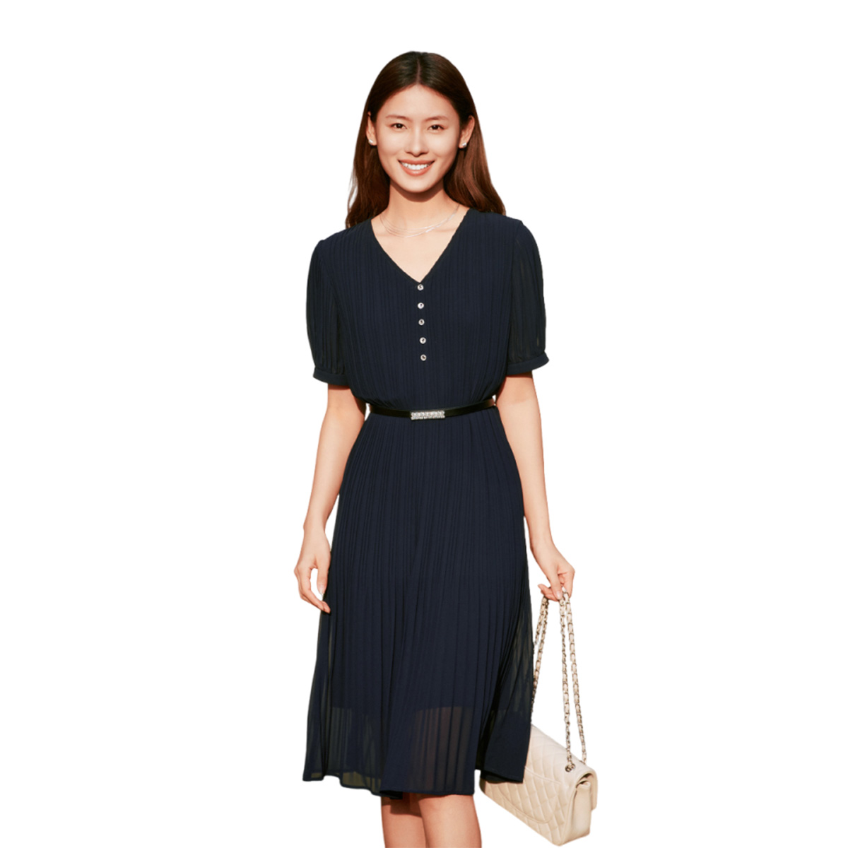 收腰连衣裙2024夏新款 法式 王楚然同款 女 朗姿三醋酸Basic衣橱