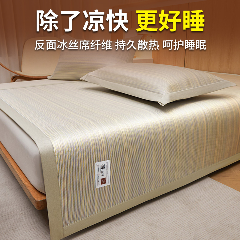 凉席夏天藤席2025新款 学生宿舍家用可折叠三件套夏凉床笠单人藤席