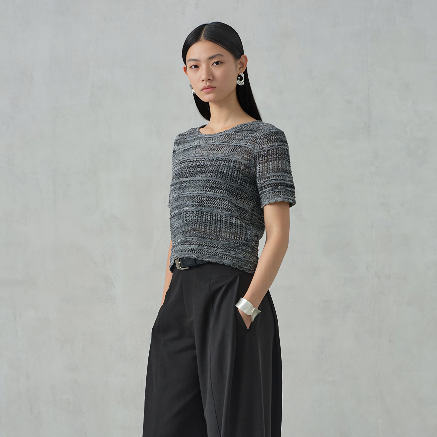 商场同款 新款 阿依莲条纹短袖 女2025夏季 洋气高级感上衣 针织衫